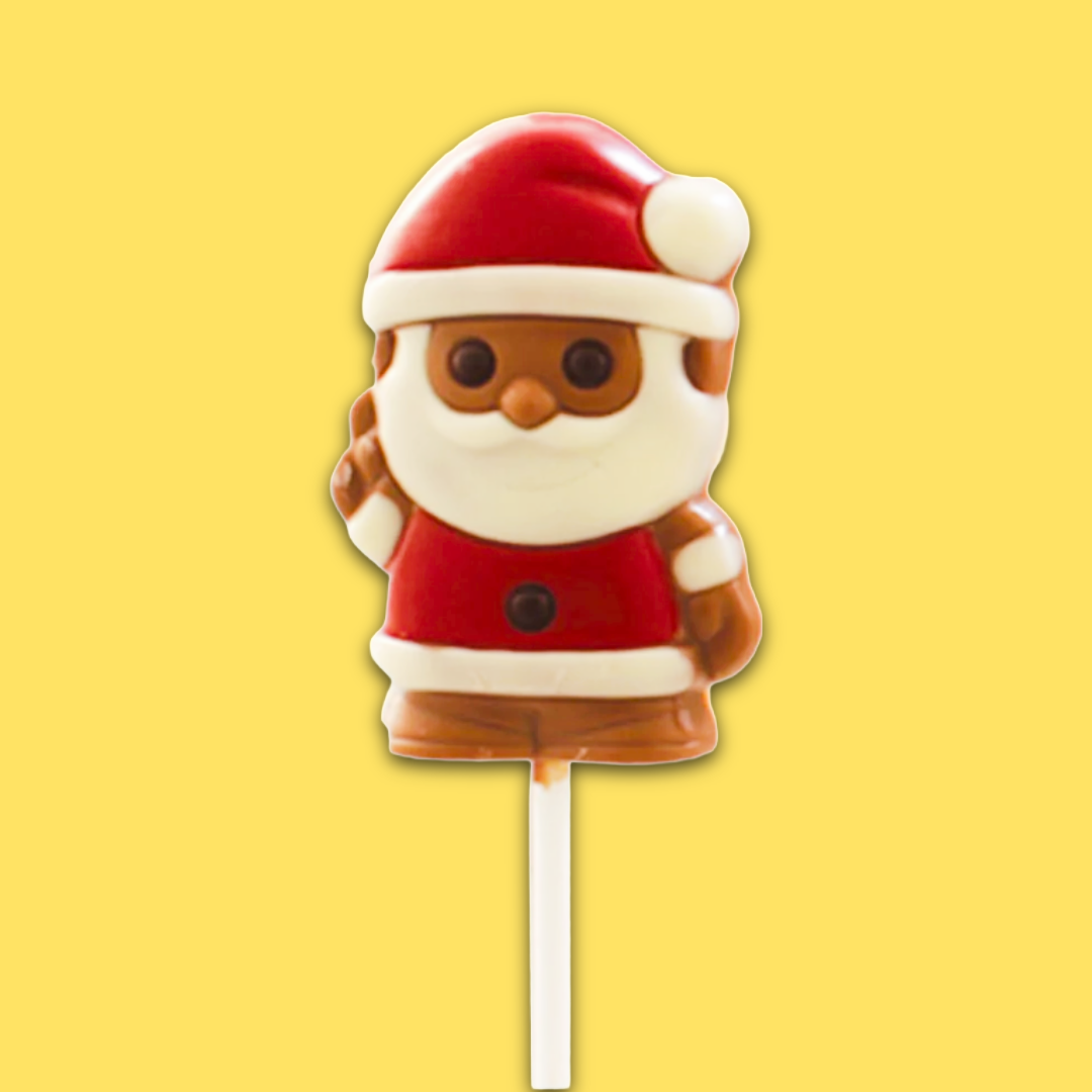 A festive favourite with a rich chocolate twist. This cheerful Santa-shaped lolly is made from smooth Belgian milk chocolate and finished with colourful cocoa butter details to bring his jolly face to life. A charming treat for stockings, gift bags, or a sweet seasonal moment. Each lolly weighs 30g and is sold individually.