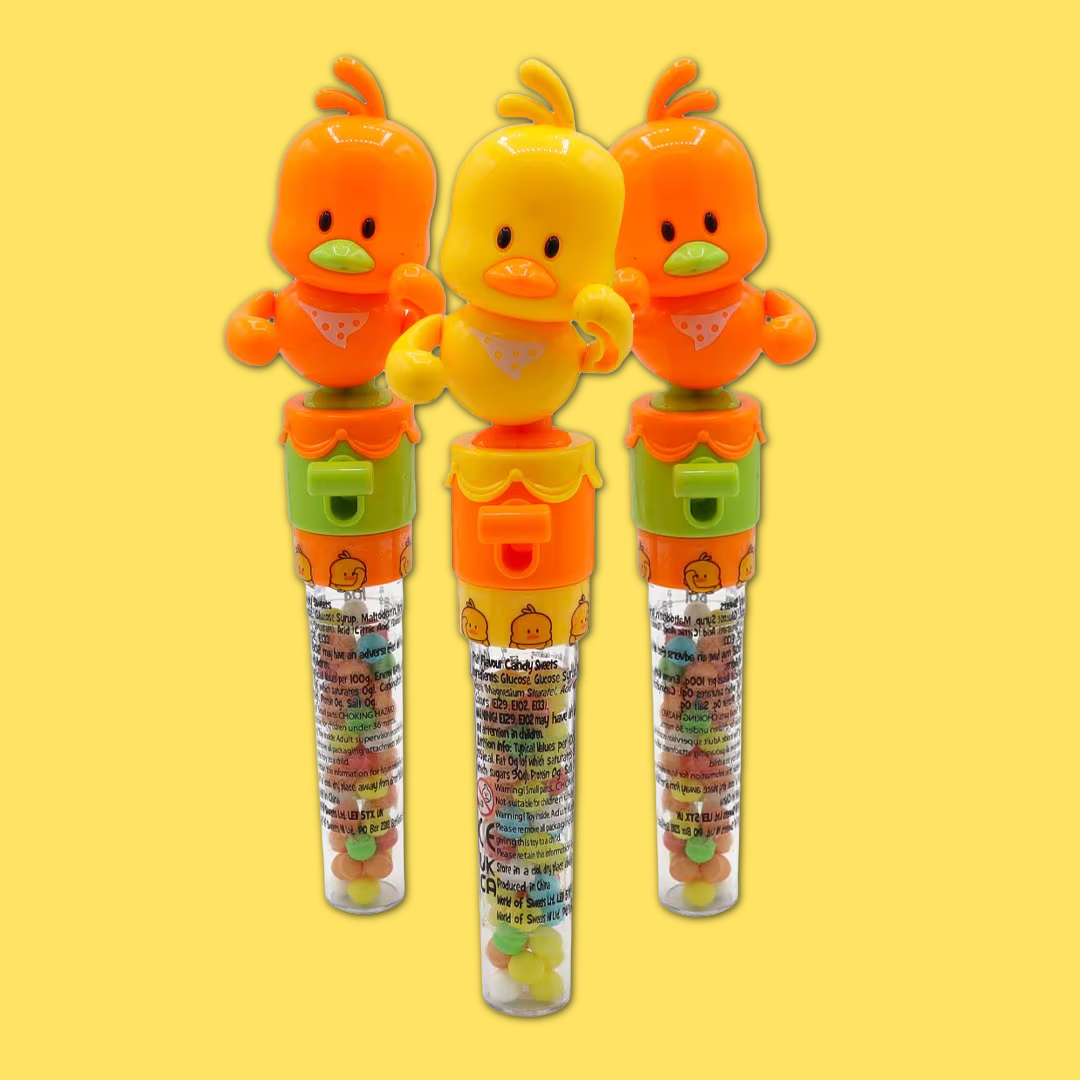 Everyone will love our Crazy Candy Factory Dancing Ducks, these fun Dancing Duck Toys make a great novelty treat! Delicious fruit flavour candy with a cute dancing duck toy, pull the lever and watching them groove! Perfect for parties, each duck comes in two fun colours.